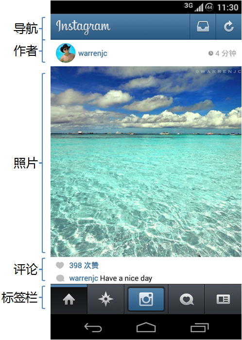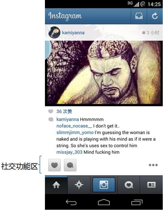 Instagram交互架构设计属于传统的iOS设计规范。