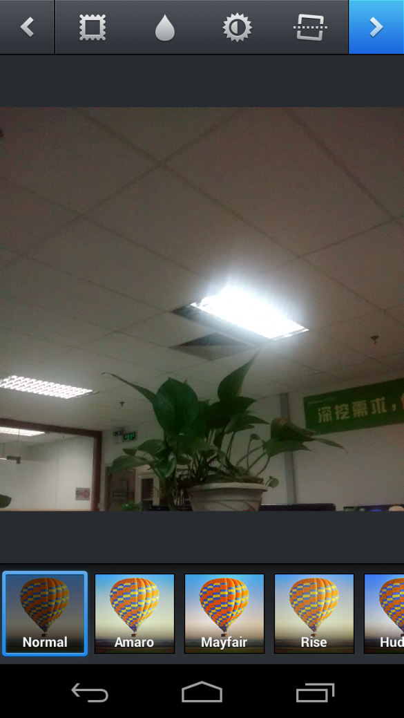 提供上一步,下一步的功能按钮,当我使用了一堆美化效果时,对于妹妹们爱美的用户,非常不错和实用,但没有清除所有效果的功能,如果用户想重新美化就得点击返回,然后再从相册中找回需要美化的照片。